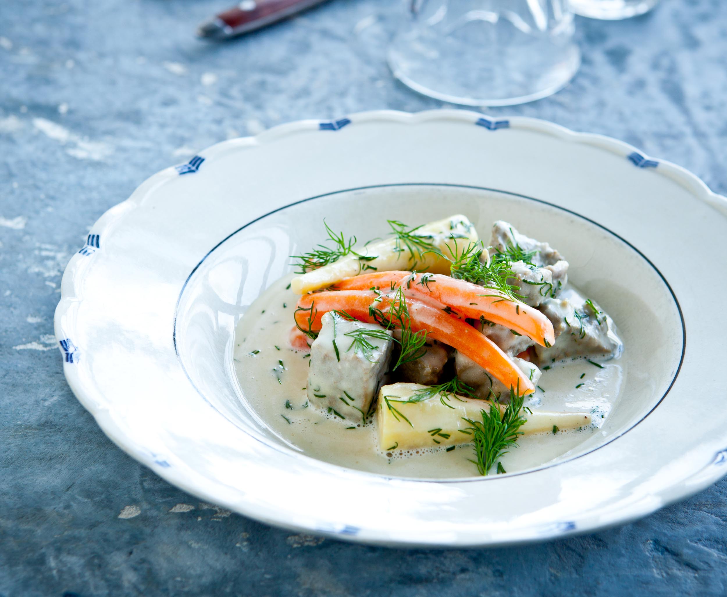 Inkokt lax med dill- och citronmajo samt vårlig påsksallad